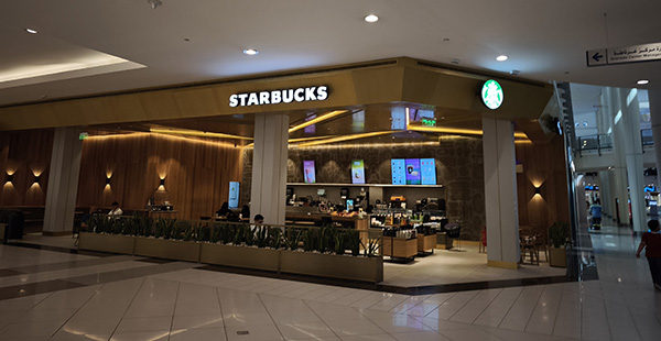特にアメリカ資本のお店(チーズケーキファクトリー、ハンバーガー、ドーナッツなど)が多くみられましたが、なかでもスターバックスはあちらこちらで見ました。
